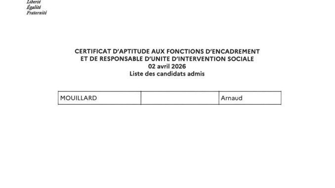 Aujourd’hui, à 45 ans, je viens d’obtenir le CAFERUIS (Certificat d’Aptitude aux Fonctions d’Encadrement et de Responsable d’Unité d’Intervention Sociale), Diplôme Bac +4 dans le secteur du médico-social.